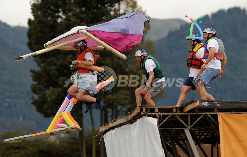 ニュース ライフ こぼれ話 目立つが勝ち? おかしな鳥人間コンテスト、コロンビアでも開催 2008年9月15日 11:41 発信地:ボゴタ/コロンビア [ 中南米 コロンビア ] このニュースをシェア ‹ › ❮ 3/5 ❯ コロンビアの首都ボゴタ(Bogota)で開催された人力飛行機による飛行コンテスト「レッドブル・フルークターク(Red Bull Flug tag)」に出場したチーム(2008年9月14日撮影)。(c)AFP/Mauricio DUENAS 画像作成中 ! 【9月15日 AFP】南米コロンビアの首都ボゴタ(Bogota)で14日、自作の人力飛行機で飛行距離を競うコンテスト「フルークターク(Flugtag、ドイツ語で「飛行の日」)が開催された。主催はオーストリアの健康飲料メーカー、レッドブル(Red Bull)。コロンビアでは初となるこのコンテストに国内各地からやって来た参加チーム36組が参加。意匠を凝らした人力飛行機での飛行を試みた。(c)AFP ライフ 一覧へ> メディア・報道関係・法人の方向け 写真・動画 購入のお問合せ>