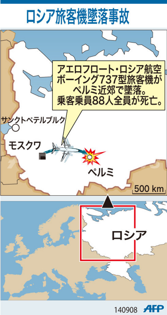 ニュース 社会 図解 【図解】ロシア旅客機墜落事故の発生地 2008年9月15日 10:07 発信地:ロシア [ ロシア・CIS ロシア ] このニュースをシェア (c)AFP 【9月15日 AFP】図は、14日に起きたアエロフロート・ロシア(Aeroflot Russian)航空ボーイング(Boeing)737型旅客機の墜落事故の発生地について示したもの。(c)AFP<ニュース解説画像一覧へ> 社会 一覧へ> メディア・報道関係・法人の方向け 写真・動画 購入のお問合せ>