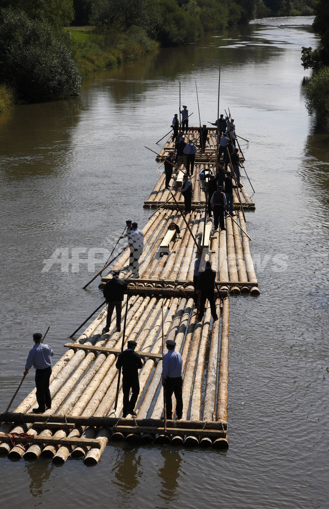 ニュース ライフ ドイツで50年前のマイン川筏下りを再現 2008年9月16日 22:39 発信地:ケンメルン/ドイツ [ ヨーロッパ ドイツ ] このニュースをシェア ‹ › ❮ 4/8 ❯ ドイツ南部バイエルン(Bavaria)州ケンメルン(Kemmern)近郊で、復元された全長75メートルの筏(いかだ)を操る船頭ら(2008年9月14日撮影)。(c)AFP/DDP/TIMM SCHAMBERGER 画像作成中 ! 【9月16日 AFP】ドイツ南部バイエルン(Bavaria)州ケンメルン(Kemmern)近郊で14日、全長75メートルの筏(いかだ)を使ったマイン川(Main)の川下りが50年ぶりに行われた。筏は当時と同じ作り方で復元されたもので、同国の歴史文化遺産の日「Heritage and Memorial day」に合わせて披露された。(c)AFP ライフ 一覧へ> メディア・報道関係・法人の方向け 写真・動画 購入のお問合せ>