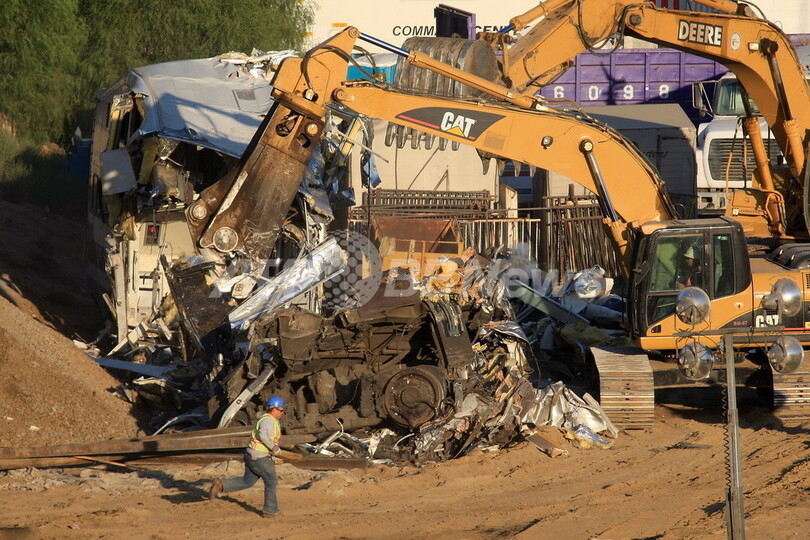 【9月15日 AFP】死者25人、重傷者95人を出した米カリフォルニア(California)州ロサンゼルス(Los Angeles)郊外の列車衝突事故から2日目の現場。