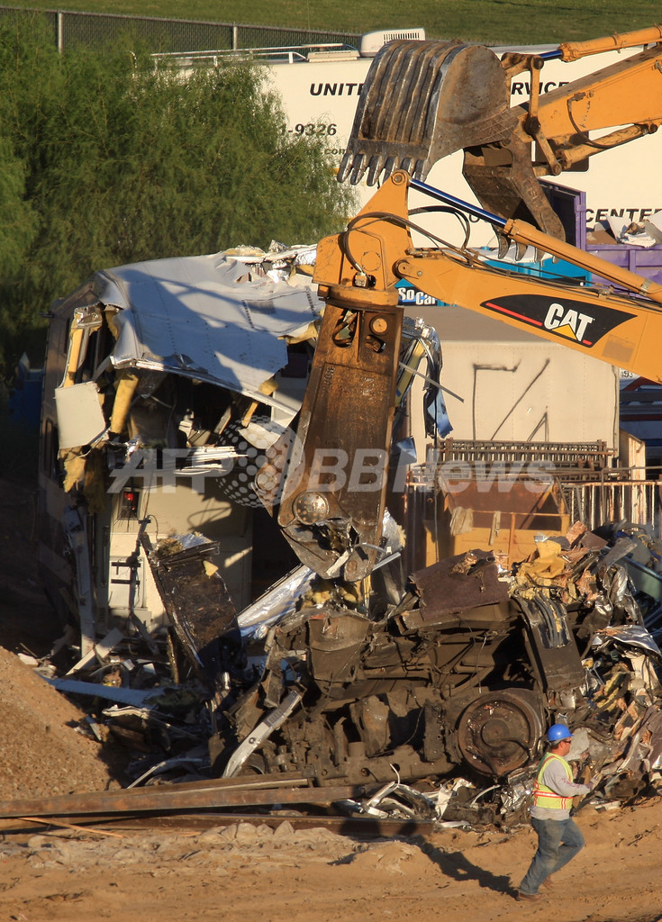 【9月15日 AFP】死者25人、重傷者95人を出した米カリフォルニア(California)州ロサンゼルス(Los Angeles)郊外の列車衝突事故から2日目の現場。