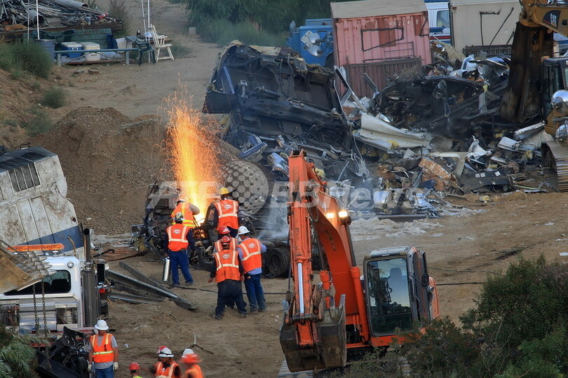【9月15日 AFP】死者25人、重傷者95人を出した米カリフォルニア(California)州ロサンゼルス(Los Angeles)郊外の列車衝突事故から2日目の現場。