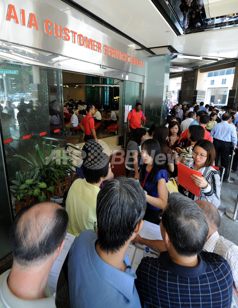 【9月19日 AFP】シンガポールにある米保険大手アメリカン・インターナショナル・グループ(AIG)の子会社では18日、米当局による救済策が発表されたにもかかわらず不安に駆られた保険契約者らが、前日に引き続き建物の外まで長蛇の列をつくっている。