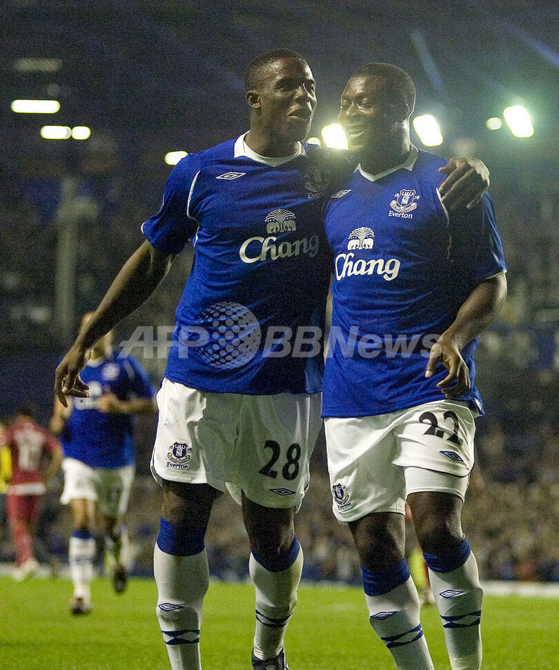 スポーツ サッカー エバートン ホームでスタンダール・リエージュと引き分ける 2008年9月19日 10:55 発信地:リバプール/英国 [ ヨーロッパ 英国 ] このニュースをシェア ‹ › ❮ 6/7 ❯ 前半23分に1-1の同点ゴールを決めてチームメイトのヴィクトル・アニチェベ(%%Victor Anichebe%%)と歓喜するエバートンのヤクブ・アイェグベニ(%%Yakubu Ayegbeni%%、右)(2008年9月18日撮影)(c)AFP/PAUL LEWIS 画像作成中 ! 【9月19日 AFP】サッカーUEFA杯2008-09(UEFA Cup 2008-09)1回戦、エバートン(Everton、イングランド)対スタンダール・リエージュ(Standard de Liege、ベルギー)第1戦。試合は2-2の引き分けに終わった。(c)AFP サッカー 一覧へ> メディア・報道関係・法人の方向け 写真・動画 購入のお問合せ>