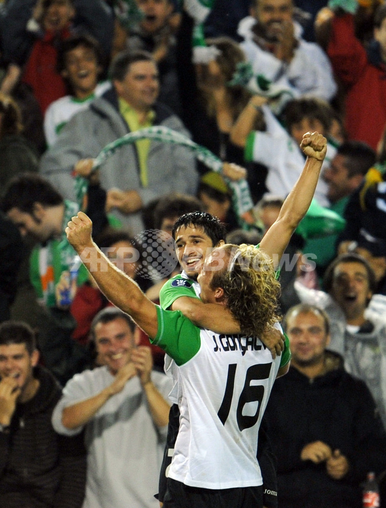 スポーツ サッカー ラシン ホームでFCホンカに先勝 2008年9月19日 11:21 発信地:サンタンデール/スペイン [ ヨーロッパ スペイン ] このニュースをシェア ‹ › ❮ 4/5 ❯ 後半12分にゴールを決めチームメイトのジョルジェ・ゴンサルヴェス(%%Jorge Goncalves%%)と共に歓喜するラシン・サンタンデールのホナタン・ペレイラ(%%Jonathan Pereira Rodriguez%%、奥)。(2008年9月18日撮影)(c)AFP/PHILIPPE DESMAZES 画像作成中 ! 【9月19日 AFP】サッカーUEFA杯2008-09(UEFA Cup 2008-09)1回戦、ラシン・サンタンデール(Racing Santander、スペイン)対FCホンカ(FC Honka、フィンランド)第1戦。試合はホームのラシンが1-0でホンカに競り勝った。(c)AFP サッカー 一覧へ> メディア・報道関係・法人の方向け 写真・動画 購入のお問合せ>