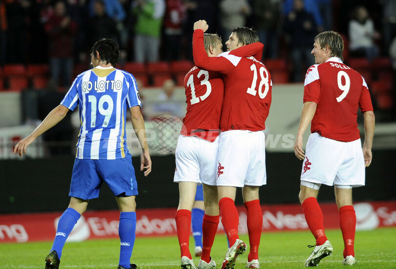 スポーツ サッカー デポルティボ・ラ・コルーニャ SKブランに敗れる 2008年9月19日 11:29 発信地:ベルゲン/ノルウェー [ ヨーロッパ ノルウェー ] このニュースをシェア ‹ › ❮ 4/4 ❯ 前半25分にペナルティーキックを決めチームメイトから祝福を受けるSKブランのオラフル・ビャルナソン(%%Olafur Orn Bjarnasson%%、右2)。(2008年9月18日撮影)(c)AFP/SCANPIX/MARIT HOMMEDAL 画像作成中 ! 【9月19日 AFP】サッカーUEFA杯2008-09(UEFA Cup 2008-09)1回戦、SKブラン(SK Brann、ノルウェー)対デポルティボ・ラ・コルーニャ(Deportivo La Coruna、スペイン)第1戦。試合はデポルティボ・ラ・コルーニャが0-2でSKブランに敗れた。(c)AFP サッカー 一覧へ> メディア・報道関係・法人の方向け 写真・動画 購入のお問合せ>