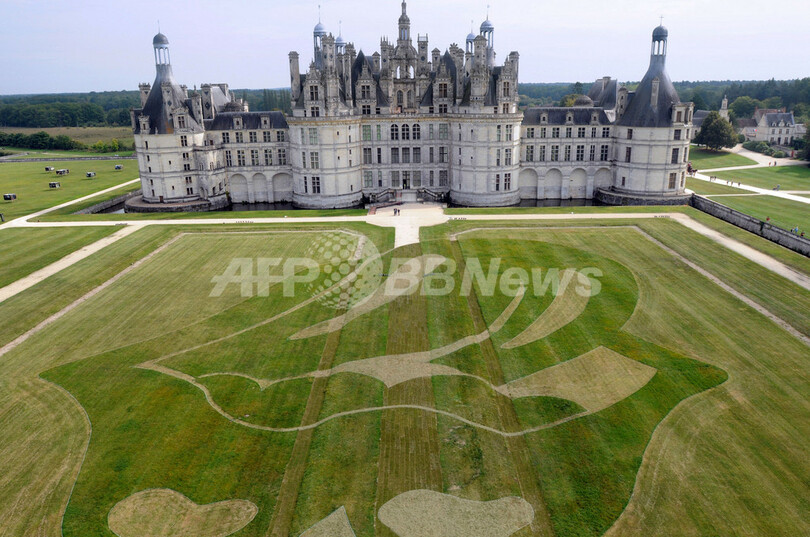 【9月19日 AFP】フランス中北部のシャンボール(Chambord)城の庭園に描かれた、英ロックバンドのローリング・ストーンズ(The Rolling Stones)の巨大な「ベロ」マーク。20、21日の日程で開かれる「文化遺産の日(Journees du Patrimoine)」記念イベントの一環として、仏アーティストのNils Guadajin氏とClaire Trottignon氏が制作したもの。(c)AFP