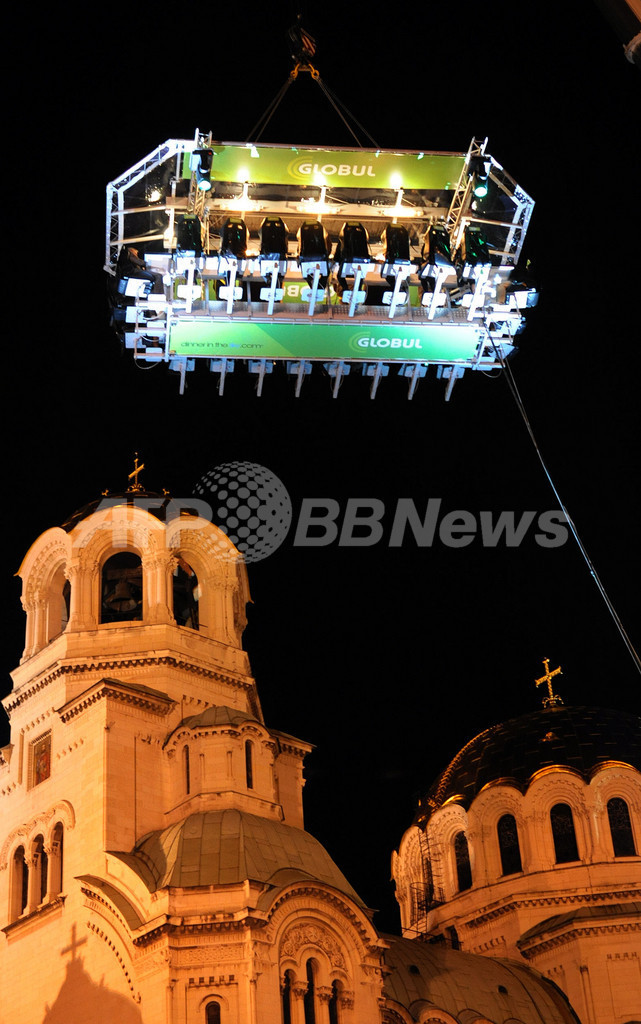 ニュース ライフ こぼれ話 「空中ディナー」で星空とスリルを満喫 2008年9月19日 11:04 発信地:ソフィア/ブルガリア [ ヨーロッパ ブルガリア ] このニュースをシェア ‹ › ❮ 2/3 ❯ ブルガリア首都ソフィア(Sofia)のアレクサンドル・ネフスキー大聖堂(Alexander Nevski Cathedral)前で開催された「空中ディナー」イベント(2008年9月18日撮影)。(c)AFP/DIMITAR DILKOFF 画像作成中 ! 【9月19日 AFP】ブルガリアの首都ソフィア(Sofia)にあるアレクサンドル・ネフスキー大聖堂(Alexander Nevski Cathedral)前で開催された、「空中ディナー」イベント。地元の携帯電話事業者がPRキャンペーンとして開催したもの。参加者は、クレーンでつり下げられたテーブルで食事を楽しむ。(c)AFP ライフ 一覧へ> メディア・報道関係・法人の方向け 写真・動画 購入のお問合せ>