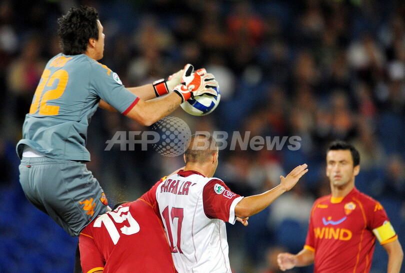 ローマは前半ロスタイムにベテランディフェンダーのクリスティアン・パヌッチ(Christian Panucci)が先制点を挙げると、後半6分にはアルベルト・アクイラーニ(Alberto Aquilani)がロケットの様なシュートを決めてリードを広げ、途中出場したシモーネ・ペロッタ(Simone Perrotta)が後半終了間際の最後のプレーからゴールを決めて勝利した。 (c)AFP/Barnaby Chesterman