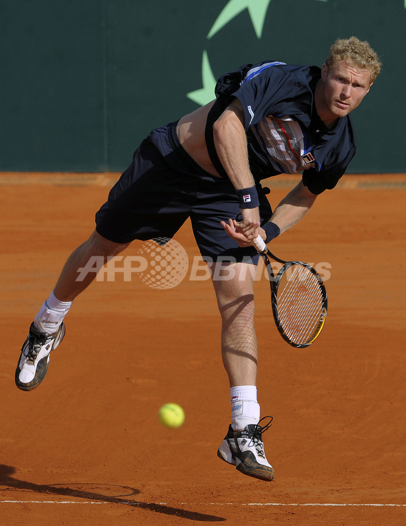【9月21日 AFP】男子テニス・デビスカップ(2008 Davis Cup)・ワールドグループ2008準決勝、アルゼンチン対ロシア。ロシアのイゴール・クニツィン(Igor Kunitsyn)/ドミトリー・ツルスノフ(Dmitry Tursunov)組は、第3試合のダブルスでアルゼンチンのギエルモ・カニャス(Guillermo Canas)/ダビド・ナルバンディアン(David Nalbandian)組と対戦。クニツィン/ツルスノフ組はセットカウント3-2(6-2、6-1、6-7、3-6、8-6)で勝利を収め、ロシアは通算成績を1勝2敗とした。(c)AFP