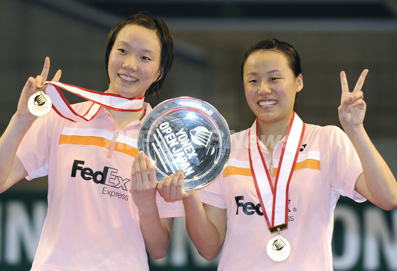 【9月21日 AFP】バドミントン、ヨネックス・オープン・ジャパン2008(YONEX OPEN JAPAN 2008)女子ダブルス決勝。中国のチェン・シュー(Cheng Shu)/ツァオ・ユンレイ(Zhao Yunlei)組は、大会第4シードのチン・エーフェイ(Chin Eei Hui、マレーシア)/ウォン・ペイティ(Pei Tty Wong、マレーシア)組 と対戦。チェン・シュー/ツァオ・ユンレイ組はゲームカウント2-1(21-19、5-21、21-18)でチン・エーフェイ/ウォン・ペイティ組を下し、優勝を飾った。(c)AFP