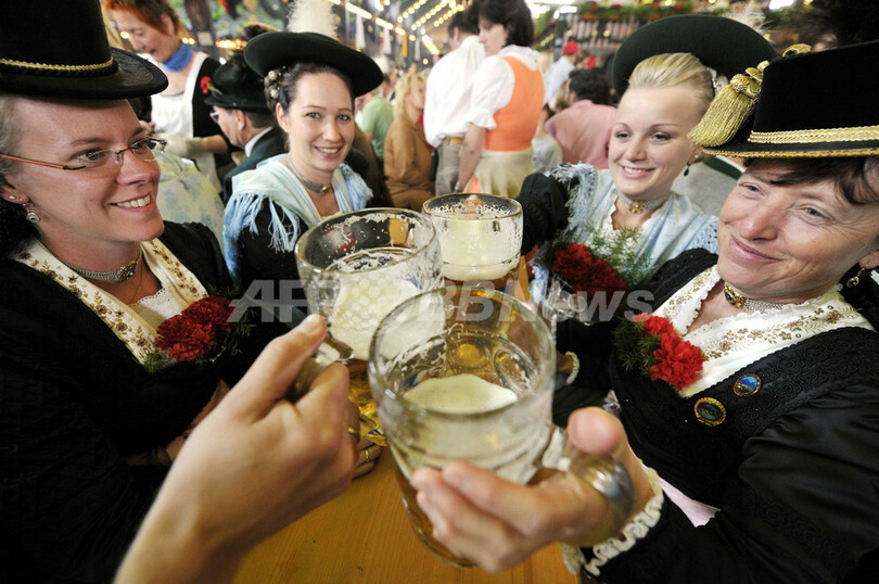 【9月22日 AFP】(写真追加)ドイツ南部ミュンヘン(Munich)で2日目を迎えた世界最大のビールの祭典「オクトーバーフェスト(Oktoberfest)」は21日、大勢の人出でにぎわった。民族衣装をまとった人々によるパレードが行われ、ギュンター・ベックシュタイン(Guenther Beckstein)バイエルン(Bavaria)州首相夫妻も参加した。主催者側は、来月5日まで約2週間の会期中、世界各地から最大600万人が訪れると見込んでいる。(c)AFP