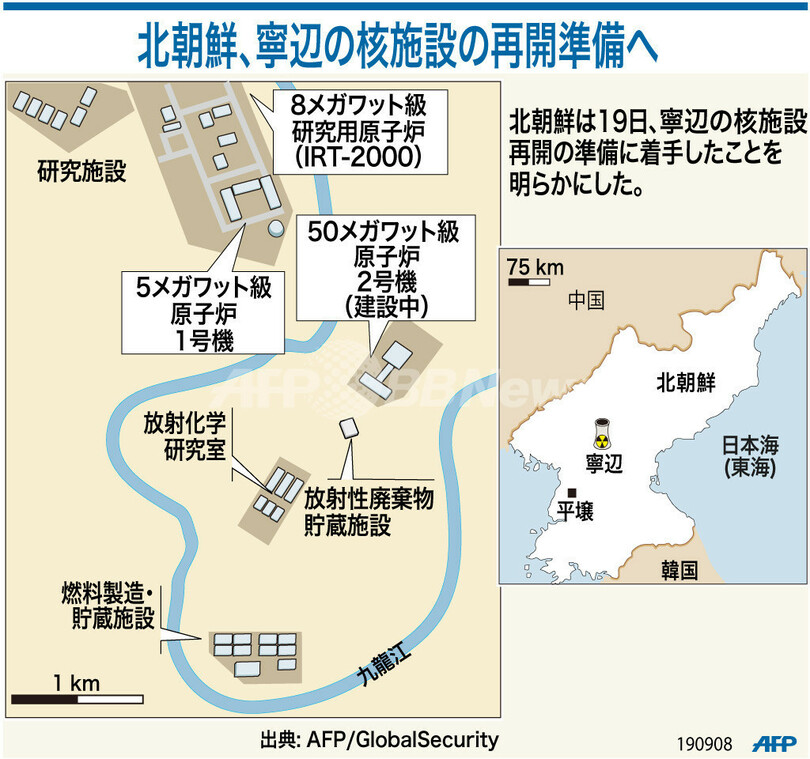 ニュース 政治・経済 図解 【図解】北朝鮮、寧辺の核施設の再開準備へ 2008年9月23日 9:46 発信地:北朝鮮 [ 韓国・北朝鮮 北朝鮮 ] このニュースをシェア (c)AFP 【9月23日 AFP】図は、北朝鮮・寧辺(Yongbyon)の核施設について示したもの。(c)AFP<ニュース解説画像一覧へ> 政治・経済 一覧へ> メディア・報道関係・法人の方向け 写真・動画 購入のお問合せ>
