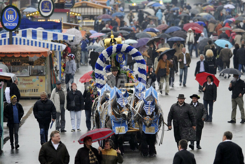 ニュース ライフ こぼれ話 まだまだ3日目、ビールの祭典「オクトーバーフェスト」 独ミュンヘン 2008年9月24日 1:09 発信地:ミュンヘン/ドイツ [ ヨーロッパ ドイツ ] このニュースをシェア ‹ › ❮ 6/6 ❯ ドイツ南部ミュンヘン(Munich)で開催中のビールの祭典「オクトーバーフェスト(Oktoberfest)」で、会場を練り歩く馬車(2008年9月22日撮影)。(c)AFP/DDP/OLIVER LANG 画像作成中 ! 【9月24日 AFP】ドイツ南部ミュンヘン(Munich)で行われている世界最大のビールの祭典「オクトーバーフェスト(Oktoberfest)」は3日目を迎えた22日も、大勢のビール好きでにぎわった。来月5日までの期間中、世界各地から最大600万人が訪れると見込まれており、会場の巨大テントで地元バイエルン(Bavaria)産ビールを飲んだり、さまざまなアトラクションを楽しむ。(c)AFP ライフ 一覧へ> メディア・報道関係・法人の方向け 写真・動画 購入のお問合せ>