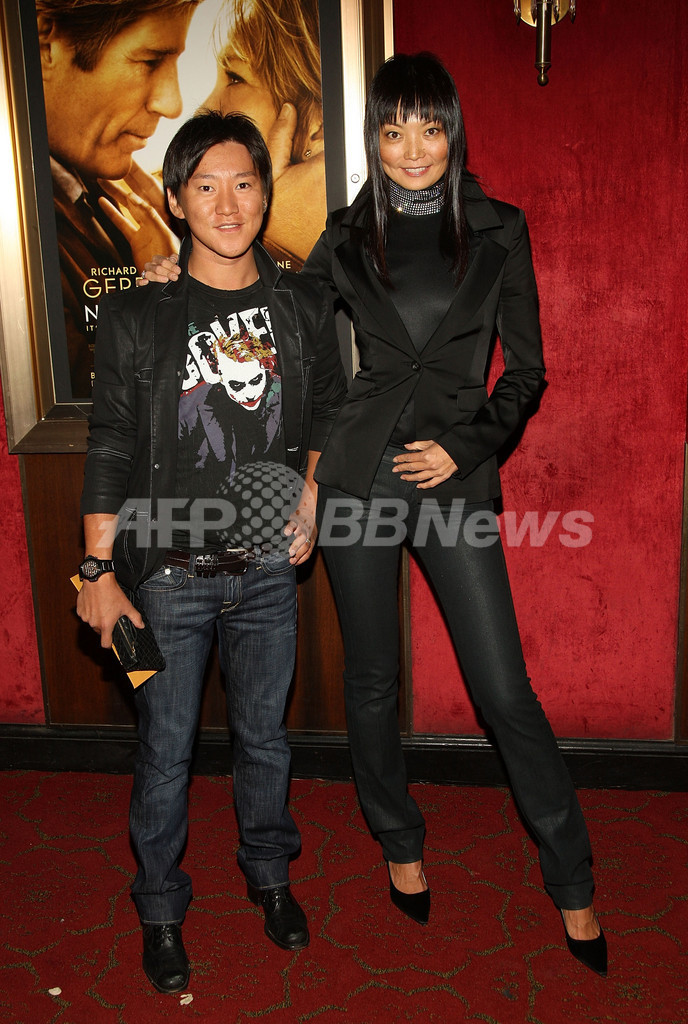 ニューヨーク(New York)のジーグフェルドシアター(Ziegfeld Theatre)で行われた映画『最後の初恋(Nights in Rodanthe)』の上映会に登場した、モデルのイリーナ・パンタエヴァ(Irina Pantaeva、右)と弟のアルカディ・パンタエヴァ(Arkady Pantaeva、2008年9月23日撮影)。(c)Getty Images/Stephen Lovekin