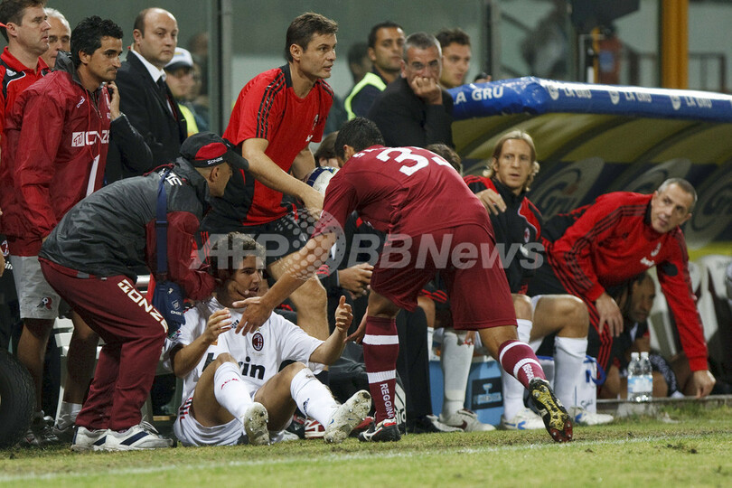 スポーツ サッカー ACミラン レッジーナ下し2連勝 2008年9月25日 10:06 発信地:レッジョ・ディ・カラブリア/イタリア [ ヨーロッパ イタリア ] このニュースをシェア ‹ › ❮ 6/13 ❯ 倒れたミランのアレシャンドレ・パト(%%Alexandre Pato%%)に手を差し伸べるレッジーナのグレイソン・ドス・サントス・ピント(%%Gleison Pinto Dos Santos%%、中央)。(2008年9月24日撮影)(c)AFP/ANTONIO TACCONE 画像作成中 ! 【9月25日 AFP】08-09イタリア・セリエA第4節、レッジーナ(Reggina Calcio)対ACミラン(AC Milan)。試合は2-1でACミランがレッジーナを下し、リーグ2連勝を飾った。(c)AFP サッカー 一覧へ> メディア・報道関係・法人の方向け 写真・動画 購入のお問合せ>