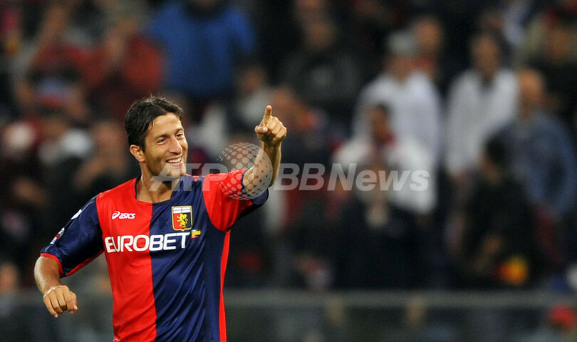 前半4分にジェノアのジュゼッペ・スクッリ(Giuseppe Sculli)に先制ゴールを許したローマは、同28分にダニエレ・デ・ロッシ(Daniele De Rossi)がゴールを決めて同点に追い着き、1-1で前半を折り返したが、後半に入りローマはディエゴ・ミリート(Diego Milito)のゴールでジェノアに勝ち越を許すと、その後デ・ロッシがこの試合2枚目のイエローカードを受けて退場処分となり、後半43分には再びミリートに追加点を決められた。(c)AFP/Barnaby Chesterman