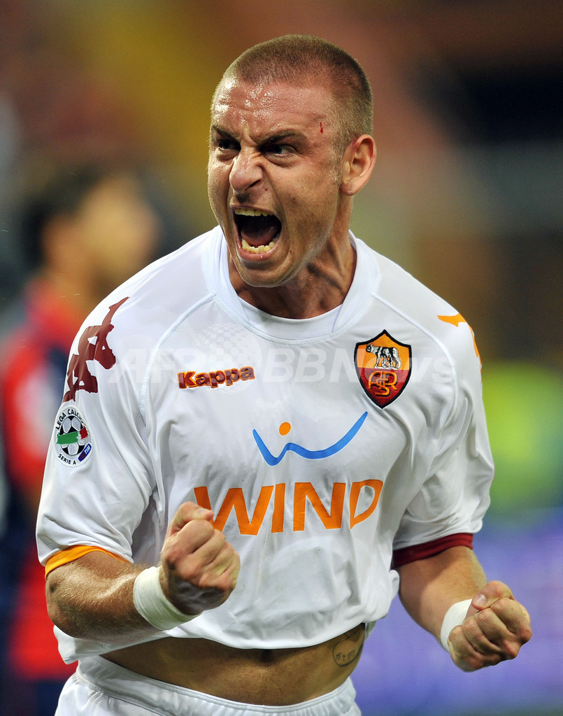 前半4分にジェノアのジュゼッペ・スクッリ(Giuseppe Sculli)に先制ゴールを許したローマは、同28分にダニエレ・デ・ロッシ(Daniele De Rossi)がゴールを決めて同点に追い着き、1-1で前半を折り返したが、後半に入りローマはディエゴ・ミリート(Diego Milito)のゴールでジェノアに勝ち越を許すと、その後デ・ロッシがこの試合2枚目のイエローカードを受けて退場処分となり、後半43分には再びミリートに追加点を決められた。(c)AFP/Barnaby Chesterman