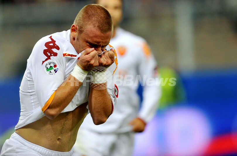 前半4分にジェノアのジュゼッペ・スクッリ(Giuseppe Sculli)に先制ゴールを許したローマは、同28分にダニエレ・デ・ロッシ(Daniele De Rossi)がゴールを決めて同点に追い着き、1-1で前半を折り返したが、後半に入りローマはディエゴ・ミリート(Diego Milito)のゴールでジェノアに勝ち越を許すと、その後デ・ロッシがこの試合2枚目のイエローカードを受けて退場処分となり、後半43分には再びミリートに追加点を決められた。(c)AFP/Barnaby Chesterman