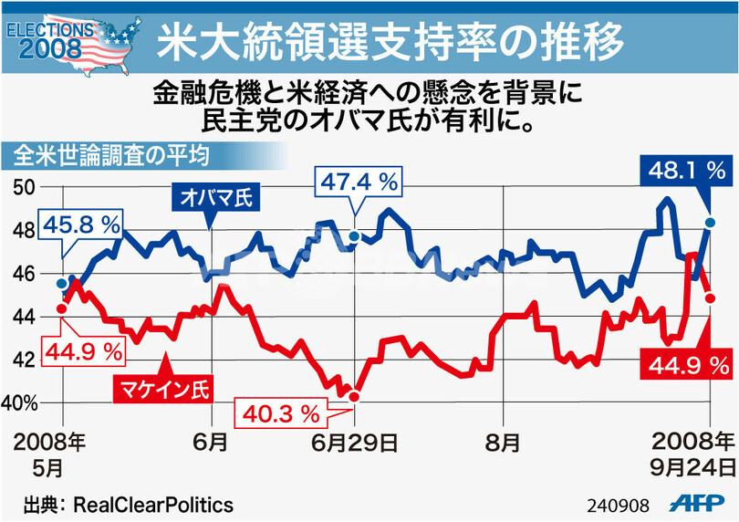 ニュース 政治・経済 図解 【図解】米大統領選支持率の推移 2008年9月25日 10:48 発信地:米国 [ 北米 米国 ] このニュースをシェア (c)AFP 【9月25日 AFP】図は、米大統領選挙における、バラク・オバマ(Barack Obama)上院議員とジョン・マケイン(John McCain)上院議員の支持率の推移について示したもの。(c)AFP<ニュース解説画像一覧へ> 政治・経済 一覧へ> メディア・報道関係・法人の方向け 写真・動画 購入のお問合せ>
