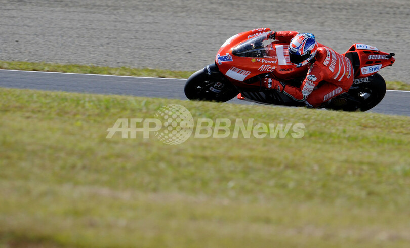【9月27日 AFP】世界ロードレース選手権(WGP 2008)第15戦・日本GP・MotoGPクラスフリー走行3回目。ドゥカティ・マールボロ(Ducati Marlboro)のケーシー・ストーナー(Casey Stoner)は、21周を走行しトップタイムとなるベストラップ1分47秒357を記録した。