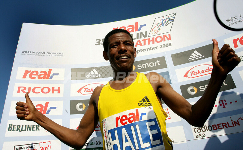 【9月28日 AFP】第35回ベルリンマラソン(35th Berlin marathon)、男子の部。大会2連覇中のハイレ・ゲブレセラシェ(Haile Gebrselassie、エチオピア)は、2時間03分59秒を記録して自身の持つ世界記録を更新して優勝を飾った。