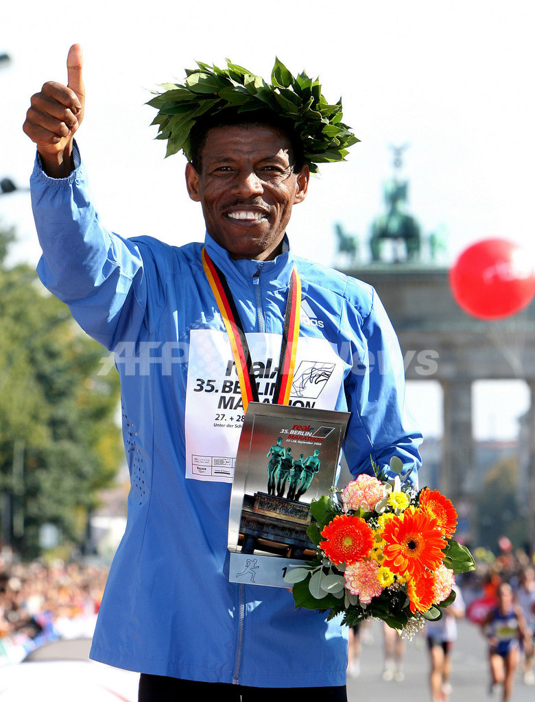 【9月28日 AFP】第35回ベルリンマラソン(35th Berlin marathon)、男子の部。大会2連覇中のハイレ・ゲブレセラシェ(Haile Gebrselassie、エチオピア)は、2時間03分59秒を記録して自身の持つ世界記録を更新して優勝を飾った。