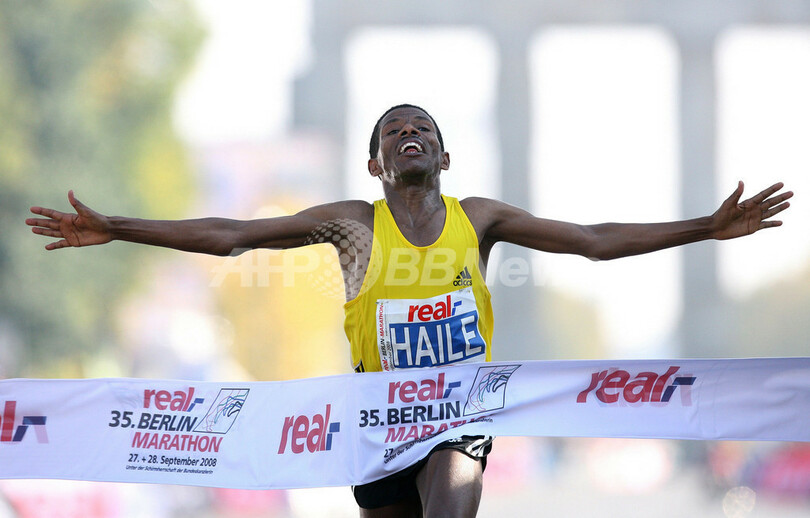【9月28日 AFP】第35回ベルリンマラソン(35th Berlin marathon)、男子の部。大会2連覇中のハイレ・ゲブレセラシェ(Haile Gebrselassie、エチオピア)は、2時間03分59秒を記録して自身の持つ世界記録を更新して優勝を飾った。
