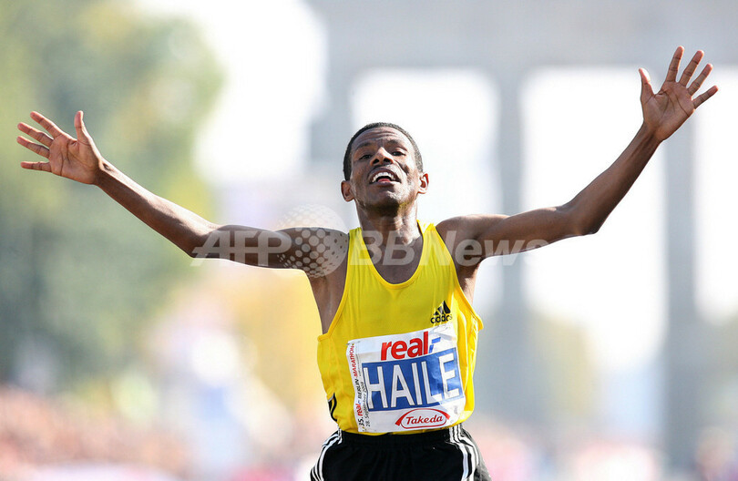 【9月28日 AFP】第35回ベルリンマラソン(35th Berlin marathon)、男子の部。大会2連覇中のハイレ・ゲブレセラシェ(Haile Gebrselassie、エチオピア)は、2時間03分59秒を記録して自身の持つ世界記録を更新して優勝を飾った。