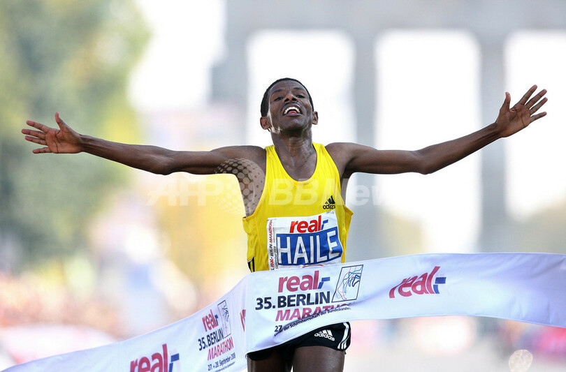 【9月28日 AFP】第35回ベルリンマラソン(35th Berlin marathon)、男子の部。大会2連覇中のハイレ・ゲブレセラシェ(Haile Gebrselassie、エチオピア)は、2時間03分59秒を記録して自身の持つ世界記録を更新して優勝を飾った。