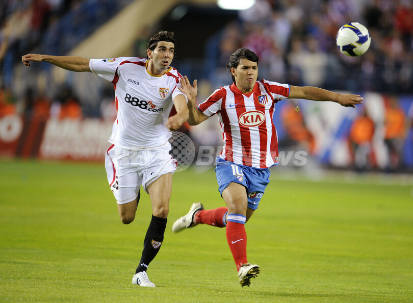 【9月29日 AFP】08-09スペイン1部リーグ第5節、アトレティコ・マドリード(Atletico de Madrid)対セビージャFC(Sevilla FC)。試合は前半21分にルイス・ファビアーノ(Luis Fabiano)がフリーキックを直接ゴールに決めて先制したセビージャが1-0でアトレティコ・マドリードを下し、セビージャは首位に立つバレンシア(Valencia CF)と勝ち点2差で4位に順位を上げた。(c)AFP/Phil Seery