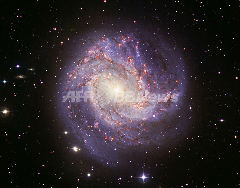 水素ガスで赤く輝いて見えるため、「1000のルビーの銀河(Thousand-Ruby Galaxy)」とも呼ばれる。天の川銀河とは構造が類似しているが、大きさはその半分だと考えられている。(c)AFP/ESO