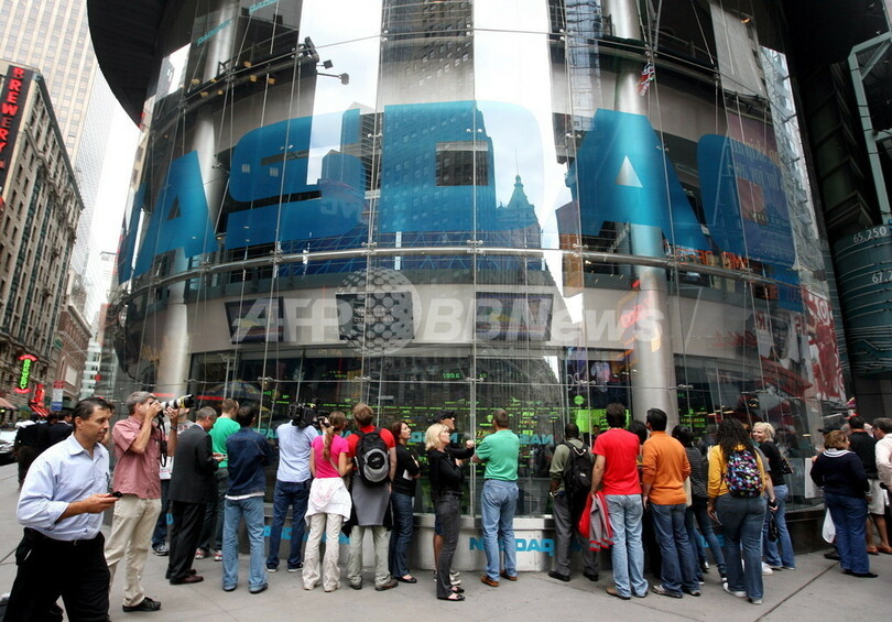 【9月30日 AFP】(写真追加)29日の米株式市場は、米下院が金融安定化法案を否決したことから、急落。ニューヨーク(New York)市場のダウ工業株30種平均(Dow Jones Industrial Average)は、少なくとも銀行3行が政府による救済を受けた欧米における金融機関の問題の拡大に対し、投資家などからの懸念が高まっていたこともあり、前週末比777.68ドル(6.98%)安の10365.45ドルで取引を終え、史上最大の下げ幅を記録した。