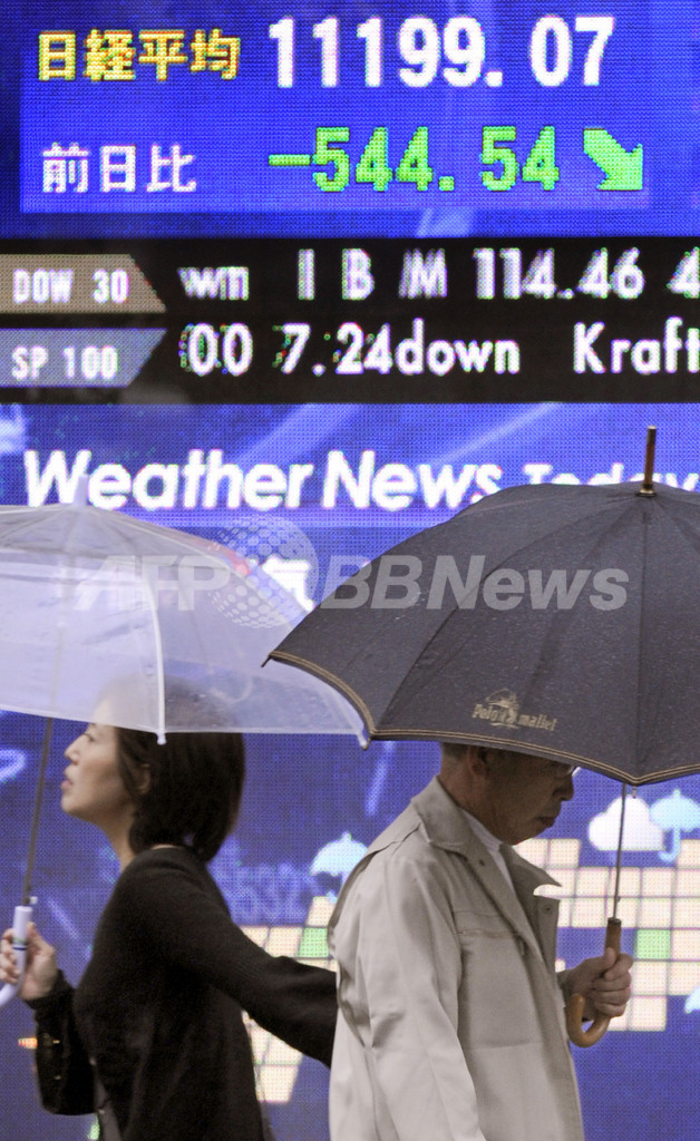 【9月30日 AFP】米下院で金融安定化法案が否決され予想外の事態となった30日、東京株式市場の日経平均株価は483円75銭(4.12%)安の1万1259円86銭で引け、2005年6月9日以来、約3年4か月ぶりの最安値となった。