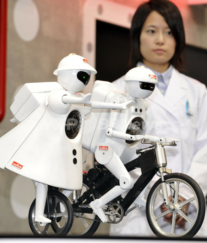 【9月30日 AFP】千葉の幕張メッセで30日開幕したアジア最大のIT・エレクトロニクス総合展「シーテックジャパン(CEATEC JAPAN)2008」で、出展している村田製作所(Murata Manufacturing)が、一輪車ロボット「ムラタセイコちゃん」を披露した。