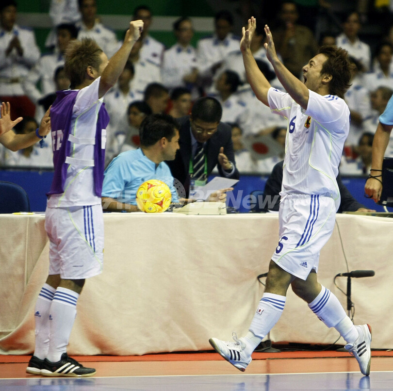 スポーツ サッカー 日本代表ブラジルに大敗、フットサルW杯 2008年10月1日 10:50 発信地:ブラジリア/ブラジル [ 中南米 ブラジル ] このニュースをシェア ‹ › ❮ 6/8 ❯ 前半15分にゴールを決めチームメイトと歓喜する日本の小曽戸允哉(%%Nobuya Osodo%%、右)。(2008年9月30日撮影)(c)AFP/EVARISTO SA 画像作成中 ! 【10月1日 AFP】フットサルW杯ブラジル大会2008(Futsal World Cup Brazil 2008)1次リーググループ、ブラジル対日本。試合は日本が1-12でブラジルに大敗した。(c)AFP サッカー 一覧へ> メディア・報道関係・法人の方向け 写真・動画 購入のお問合せ>