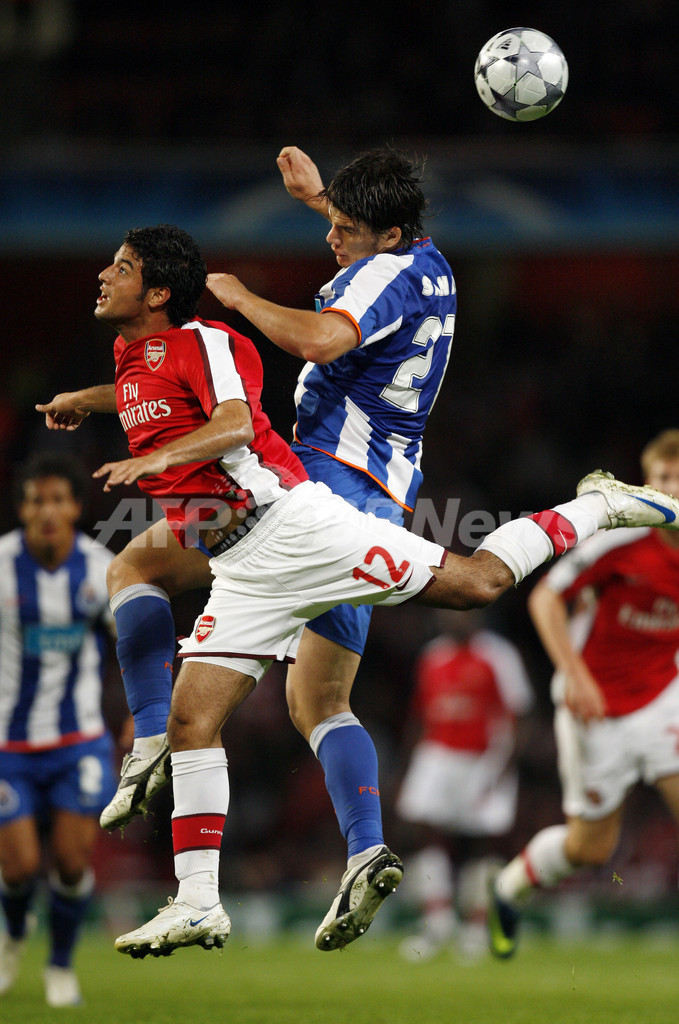 【10月1日 AFP】(記事追加)サッカー欧州チャンピオンズリーグ2008-09(UEFA Champions League 2008-09)グループリーグG第2節、アーセナル(Arsenal)対FCポルト(FC Porto)。試合はアーセナルが4-0でポルトに快勝し、グループリーグ初勝利を挙げた。