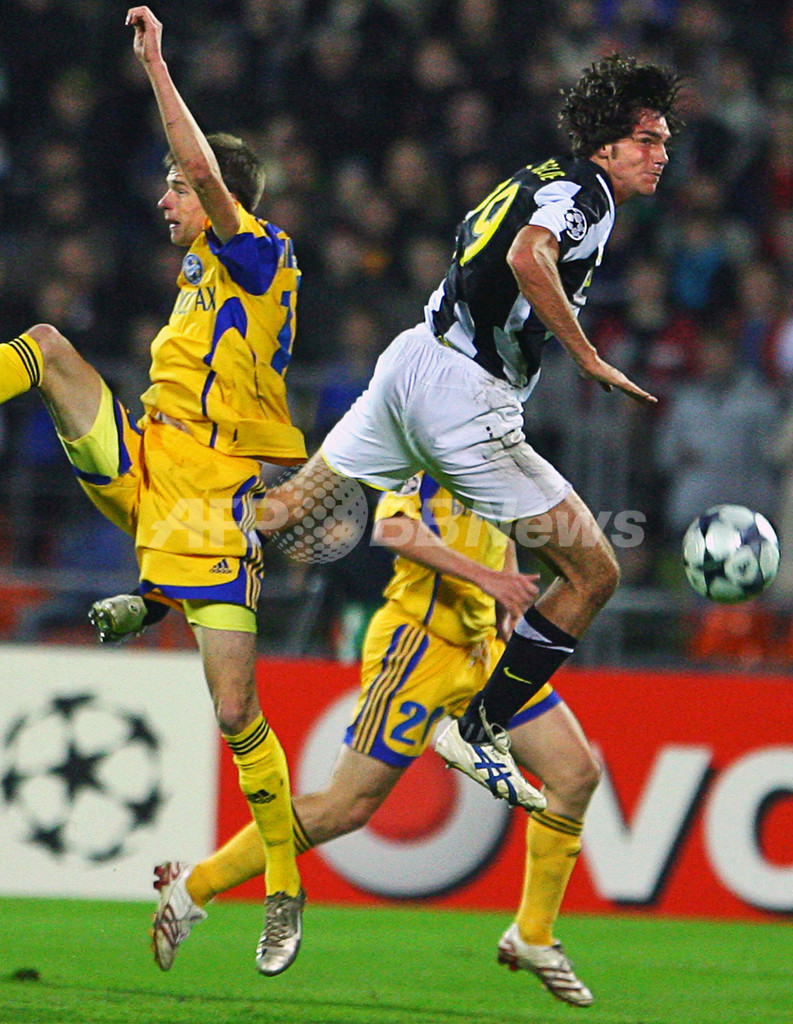【10月1日 AFP】(写真追加、記事更新)サッカー欧州チャンピオンズリーグ2008-09(UEFA Champions League 2008-09)グループリーグH第2節、BATEボリソフ(BATE Borisov)対ユベントス(Juventus)。試合はユベントスが2点のリードを許したが、ビンチェンツォ・イアクインタ(Vincenzo Iaquinta)が前半29分と同ロスタイムにゴールを決めて2-2の引き分けに終わった。(c)AFP/Pirate Irwin