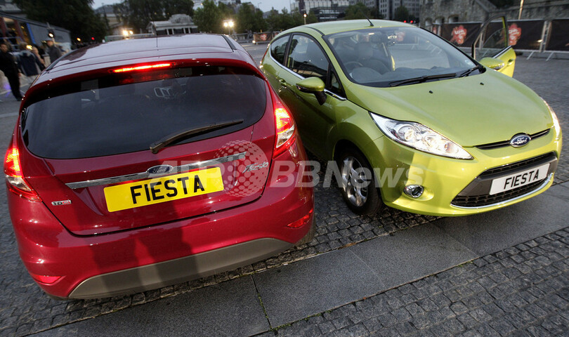 英ロンドン(London)中心部のロンドン塔(London Tower)で披露された米自動車大手フォード・モーター(Ford Motor)の新型「フィエスタ(Ford Fiesta)」(2008年9月30日撮影)。(c)AFP/Shaun Curry