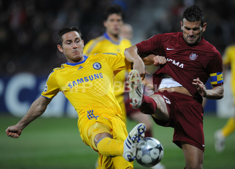 スポーツ サッカー チェルシー アウェーでCFRクルージュと引き分ける 2008年10月2日 6:03 発信地:ブカレスト/ルーマニア [ ヨーロッパ ルーマニア ] このニュースをシェア ‹ › ❮ 10/20 ❯ CFRクルージュのカドゥ(%%Cadu%%)とボールを競るチェルシーのフランク・ランパード(%%Frank Lampard%%、左)。(2008年10月1日撮影)(c)AFP/DANIEL MIHAILESCU 画像作成中 ! 【10月2日 AFP】(写真追加)サッカー欧州チャンピオンズリーグ2008-09(UEFA Champions League 2008-09)グループリーグA第2節、CFRクルージュ(CFR Cluj)対チェルシー(Chelsea)。試合はスコアレスドローに終わった。(c)AFP サッカー 一覧へ> メディア・報道関係・法人の方向け 写真・動画 購入のお問合せ>
