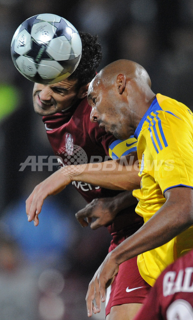 スポーツ サッカー チェルシー アウェーでCFRクルージュと引き分ける 2008年10月2日 6:03 発信地:ブカレスト/ルーマニア [ ヨーロッパ ルーマニア ] このニュースをシェア ‹ › ❮ 2/20 ❯ CFRクルージュのカドゥ(%%Cadu%%)とヘディングでボールを競るチェルシーのニコラ・アネルカ(%%Nicolas Anelka%%、右)。(2008年10月1日撮影)(c)AFP/DANIEL MIHAILESCU 画像作成中 ! 【10月2日 AFP】(写真追加)サッカー欧州チャンピオンズリーグ2008-09(UEFA Champions League 2008-09)グループリーグA第2節、CFRクルージュ(CFR Cluj)対チェルシー(Chelsea)。試合はスコアレスドローに終わった。(c)AFP サッカー 一覧へ> メディア・報道関係・法人の方向け 写真・動画 購入のお問合せ>