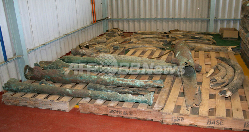 難破船は4月に、ナミビア南部のオラニエムント(Oranjemund)沖で、ダイヤモンド掘削作業中に偶然発見された。船からは2300枚以上、重量にして21キロ分の金貨のほか、青銅製の大砲6門、銀、銅のインゴット13トン、スズ8トン、計600キロ50本以上の象牙、さまざまな武器などが発見された。