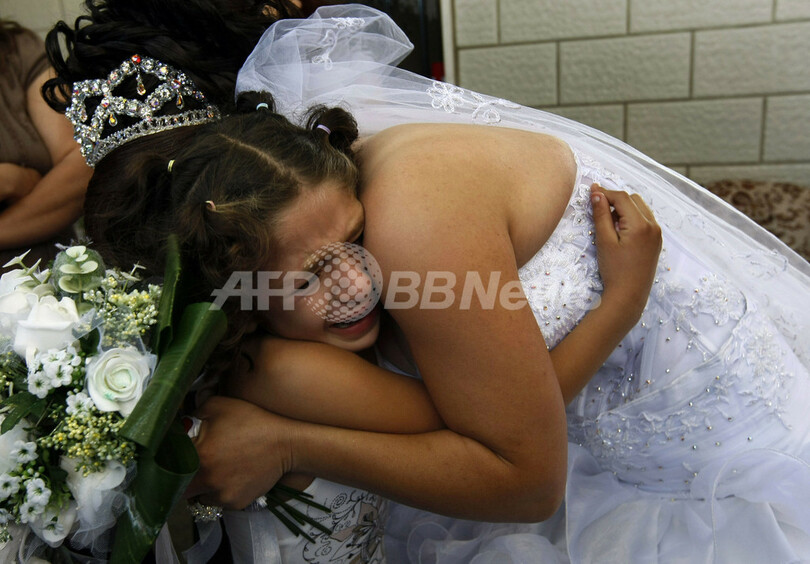花嫁と花婿の家族は親族だが、第3次中東戦争でシリア内とイスラエル占領下のゴラン高原に生き別れてしまった。花嫁のSafadiさんは、ゴラン高原に残る実家の家族には二度と会えないだろうと親族たちは語った。(c)AFP