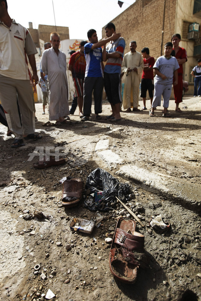 治安当局によると、1件目の自爆攻撃はバグダッド南部のシーア派地区ジャディダ(Jadida)で発生。モスクの外で身体検査を受けていた男が自爆し、12人が死亡、30人が負傷した。