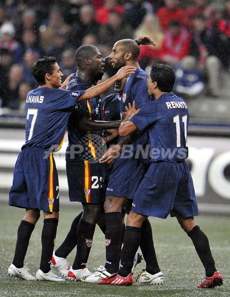 スポーツ サッカー セビージャFC グループリーグ進出 2008年10月3日 9:05 発信地:ザルツブルグ/オーストリア [ ヨーロッパ オーストリア ] このニュースをシェア ‹ › ❮ 1/5 ❯ フレデリック・カヌーテ(%%Frederic Kanoute%%、右2)のゴールに歓喜するセビージャFCの選手。(2008年10月2日撮影)(c)AFP/K.Josch 画像作成中 ! 【10月3日 AFP】サッカーUEFA杯2008-09(UEFA Cup 2008-09)1回戦、レッドブル・ザルツブルク(Red Bull Salzburg)対セビージャFC(Sevilla FC)第2戦。試合は2-0で勝利したセビージャFCが2試合合計スコアを4-0としてグループリーグ進出を決めた。(c)AFP サッカー 一覧へ> メディア・報道関係・法人の方向け 写真・動画 購入のお問合せ>