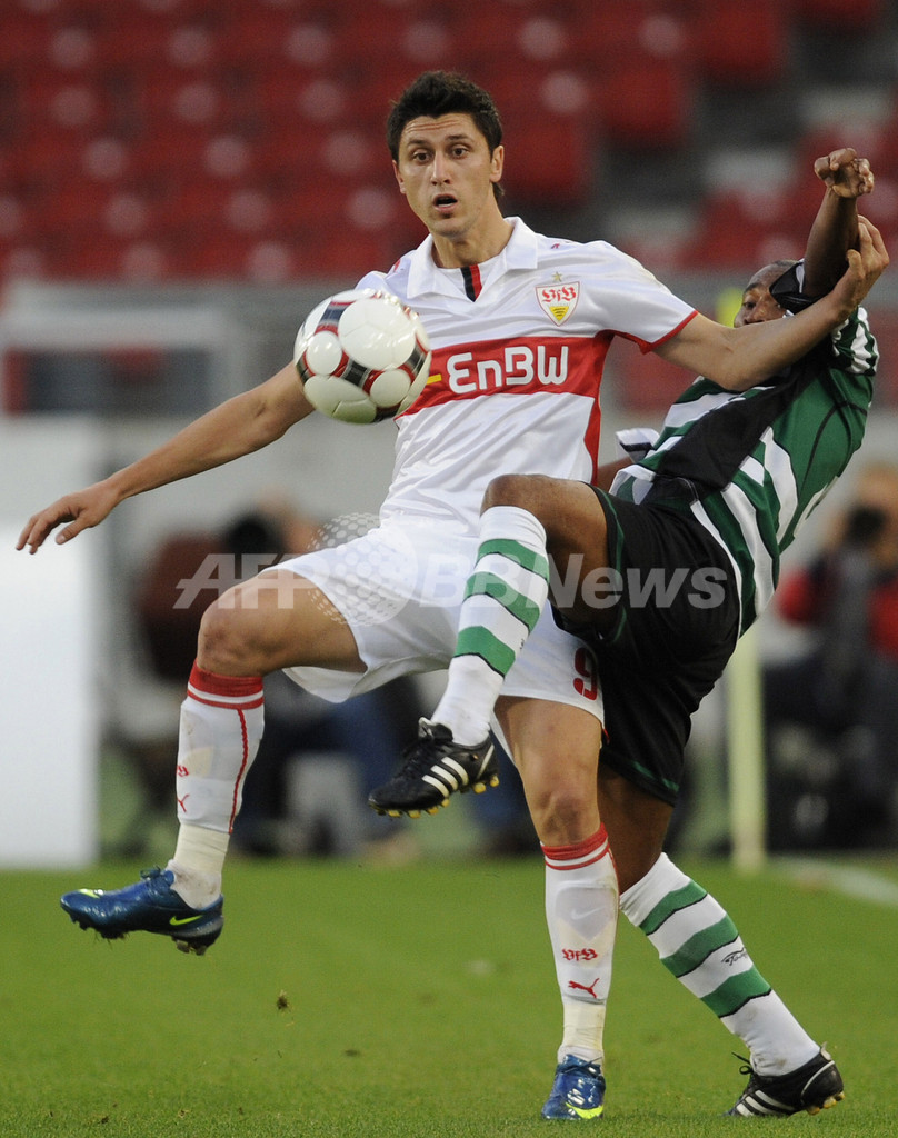 スポーツ サッカー シュツットガルト グループリーグ進出決定 2008年10月3日 10:01 発信地:シュツットガルト/ドイツ [ ヨーロッパ ドイツ ] このニュースをシェア ‹ › ❮ 6/6 ❯ PFCチェルノ・モレ・バルナのペリス(%%Jovaldir Ferreira、"Peris"%%、右)とボールを競るシュツットガルトのチプリアン・マリカ(%%Ciprian Marica%%)。(2008年10月2日撮影)(c)AFP/DDP/OLIVER LANG 画像作成中 ! 【10月3日 AFP】サッカーUEFA杯2008-09(UEFA Cup 2008-09)1回戦、VfBシュツットガルト(VfB Stuttgart)対PFCチェルノ・モレ・バルナ(PFC Cherno More Varna)第2戦。試合は2-2の引き分けに終わり、2試合合計スコアを4-3としたシュツットガルトがグループリーグ進出を決めた。(c)AFP サッカー 一覧へ> メディア・報道関係・法人の方向け 写真・動画 購入のお問合せ>