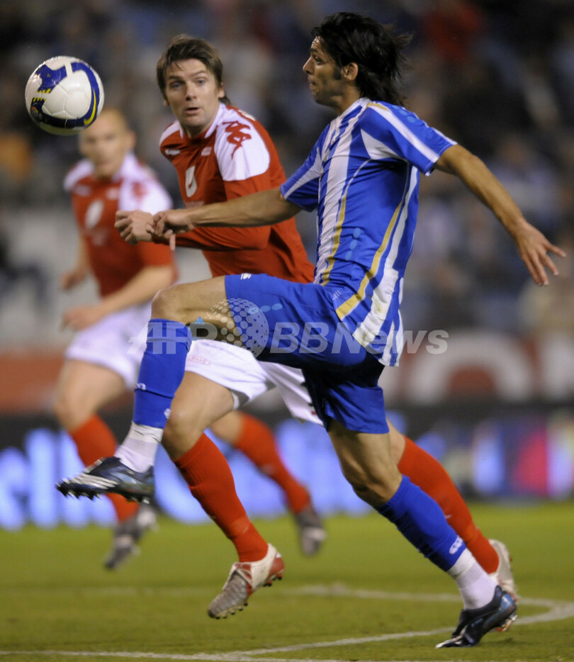 【10月3日 AFP】サッカーUEFA杯2008-09(UEFA Cup 2008-09)1回戦、デポルティボ・ラ・コルーニャ(Deportivo La Coruna)対SKブラン(SK Brann)第2戦。試合はデポルティボ・ラ・コルーニャが2-0で勝利を挙げ、2試合合計スコアを2-2の同点とし、そのまま延長でも決着つかず迎えたペナルティーキック(PK)戦でデポルティボ・ラ・コルーニャが3-2で勝利した。(c)AFP