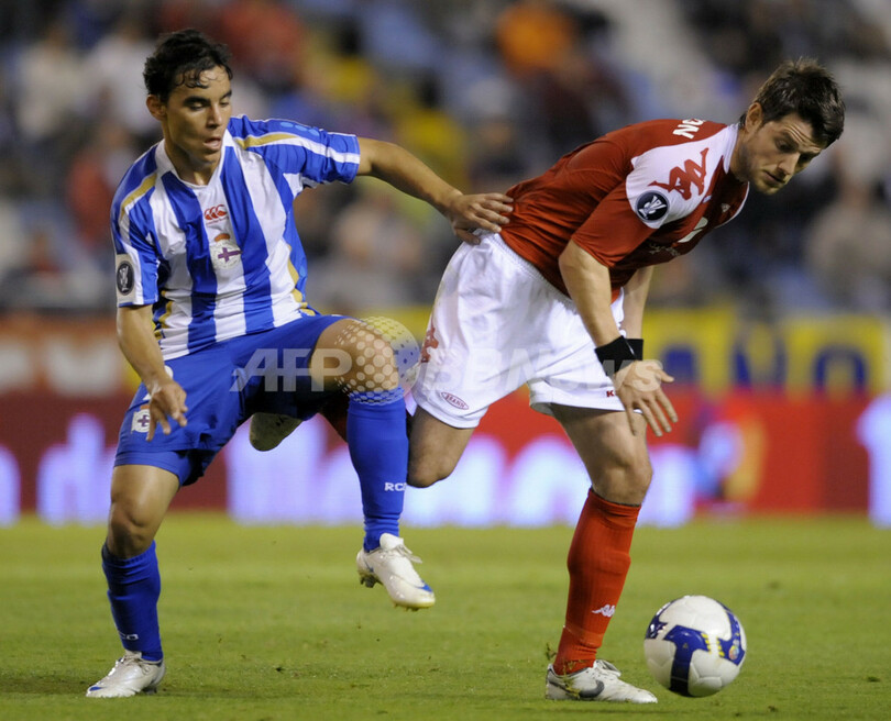 【10月3日 AFP】サッカーUEFA杯2008-09(UEFA Cup 2008-09)1回戦、デポルティボ・ラ・コルーニャ(Deportivo La Coruna)対SKブラン(SK Brann)第2戦。試合はデポルティボ・ラ・コルーニャが2-0で勝利を挙げ、2試合合計スコアを2-2の同点とし、そのまま延長でも決着つかず迎えたペナルティーキック(PK)戦でデポルティボ・ラ・コルーニャが3-2で勝利した。(c)AFP