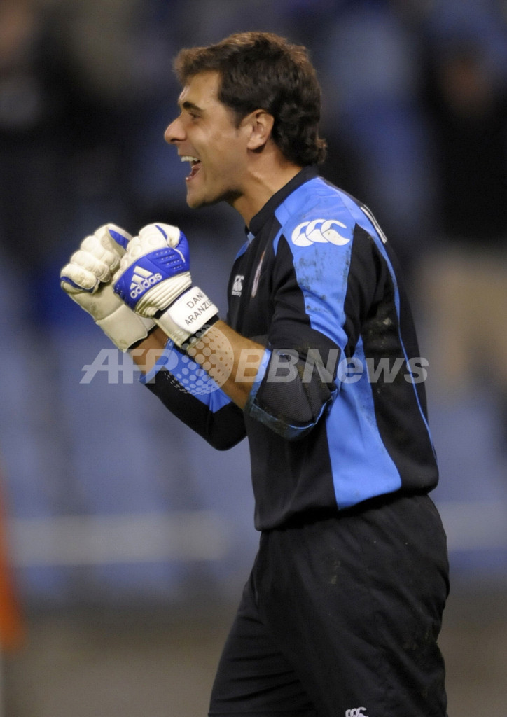 【10月3日 AFP】サッカーUEFA杯2008-09(UEFA Cup 2008-09)1回戦、デポルティボ・ラ・コルーニャ(Deportivo La Coruna)対SKブラン(SK Brann)第2戦。試合はデポルティボ・ラ・コルーニャが2-0で勝利を挙げ、2試合合計スコアを2-2の同点とし、そのまま延長でも決着つかず迎えたペナルティーキック(PK)戦でデポルティボ・ラ・コルーニャが3-2で勝利した。(c)AFP