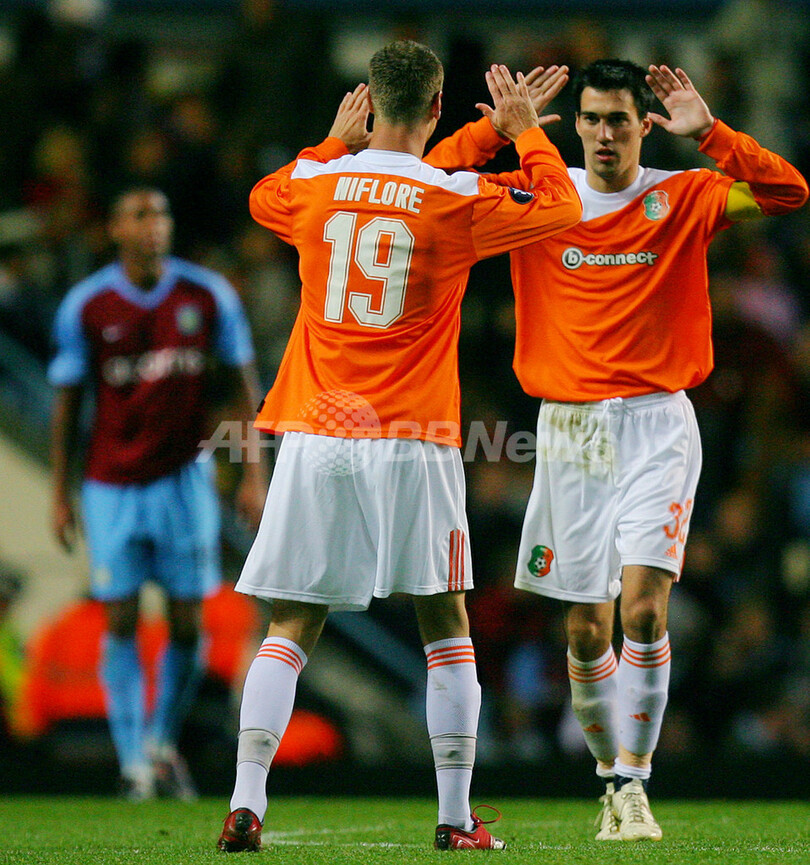 スポーツ サッカー アストン・ビラ PFCリテックス・ロベチを破りグループリーグ進出 2008年10月3日 10:21 発信地:バーミンガム/英国 [ ヨーロッパ 英国 ] このニュースをシェア ‹ › ❮ 2/6 ❯ 後半8分にPKを決めてチームメイトのイヴェリン・ポポフ(%%Ivelin Popov%%、右)と喜びを分かち合うロベチのウィルフリード・ニフロア(%%Willfred Niflor%%、左)。(2008年10月2日撮影)(c)AFP/Carl de Souza 画像作成中 ! 【10月3日 AFP】サッカーUEFA杯2008-09(UEFA Cup 2008-09)1回戦、アストン・ビラ(Aston Villa)対PFCリテックス・ロベチ(PFC Litex Lovech)第2戦。試合は1-1の引き分けに終わり、2試合合計4-2としたアストン・ビラがグループリーグ進出を決めた。(c)AFP サッカー 一覧へ> メディア・報道関係・法人の方向け 写真・動画 購入のお問合せ>